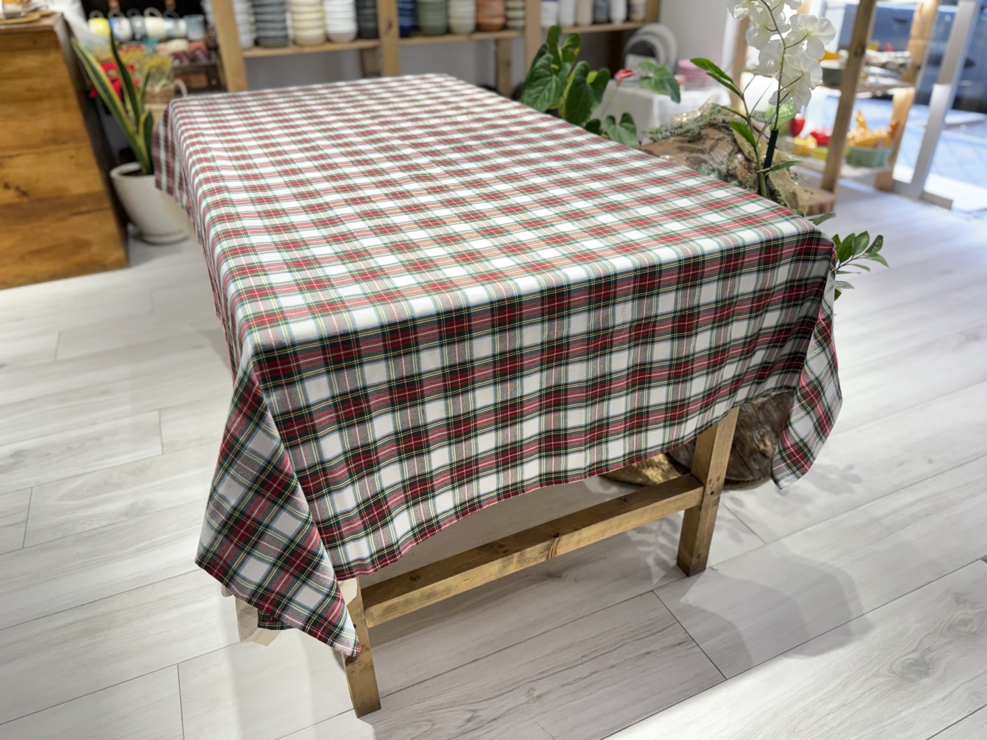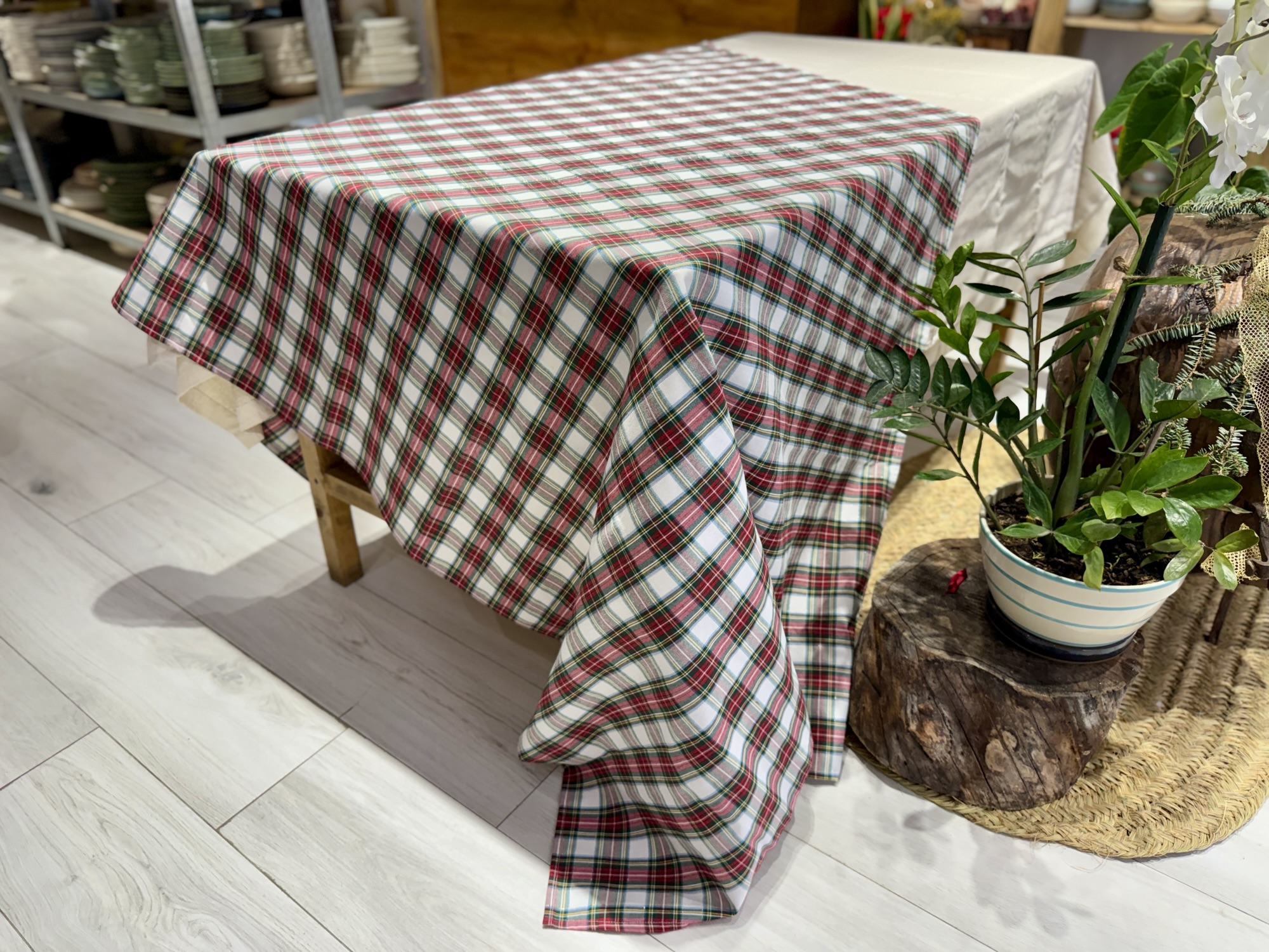 Mantel cuadros escoceses rojo, verde y crema